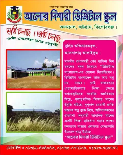 Welcome To Aloor Dishari Digital School, came into existence in 2018 at Austogram, Kishoregonj. Aloor Dishari Digital School was established with an ennobling vision, creating leaders of the future, by imparting holistic education, in an environment of excellence – where students and faculty from different parts of the Country come together for the purpose of learning.